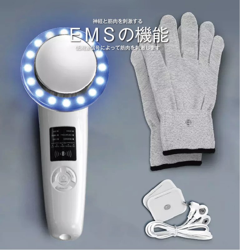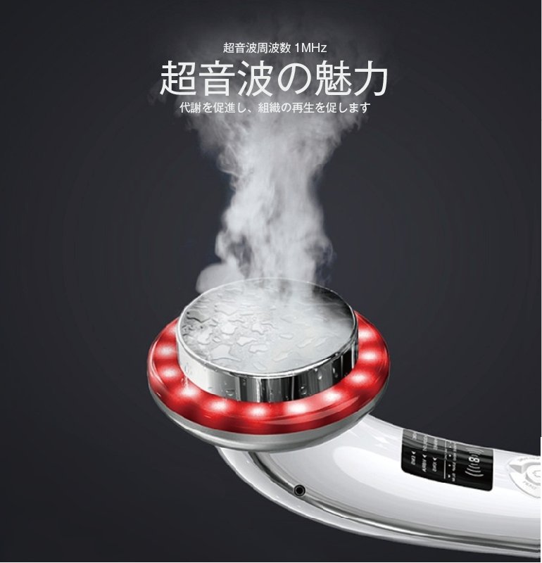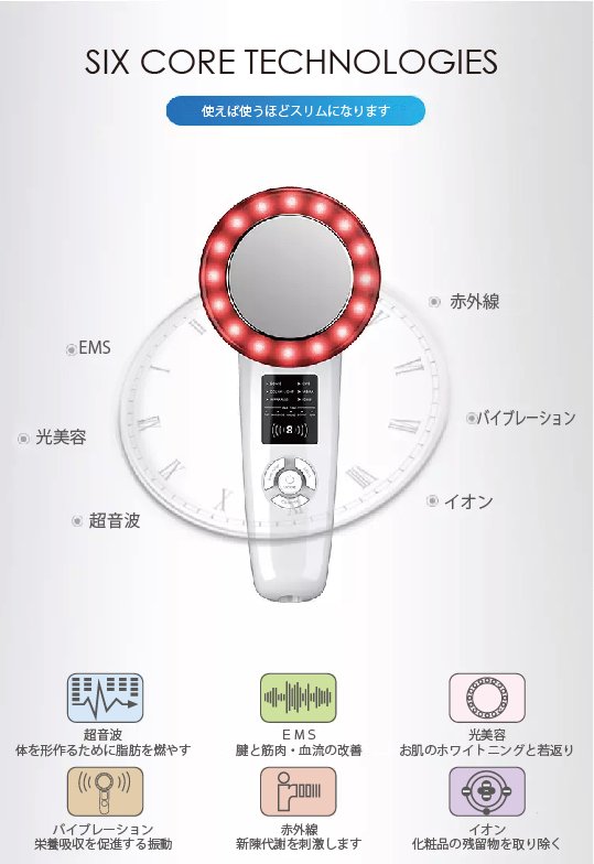 超音波・EMS・光美容・バイブレーション・赤外線・イオン導出の6機能。