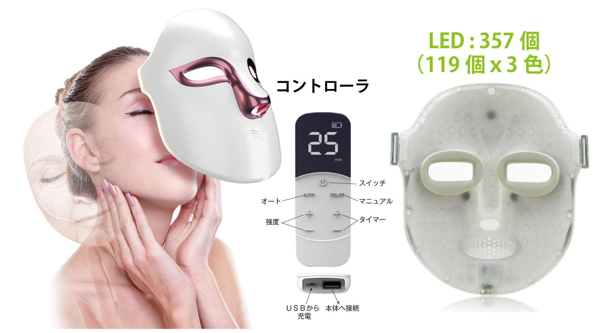 | 光エネルギー | Red:40-60mW/cm2、 Blue:60-90mW/cm2、 Yellow:30-50mW/cm2 |
