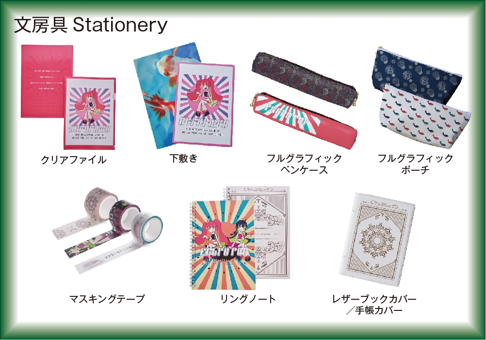 印刷してから裁縫する工程で、フルグラフィック・高品質をロット1で実現しました。オリジナル文具雑貨です。