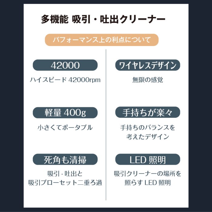 吸引の他、エアダスター(吹き飛ばし)もできます ※スタンドはメーカーオプションです。
